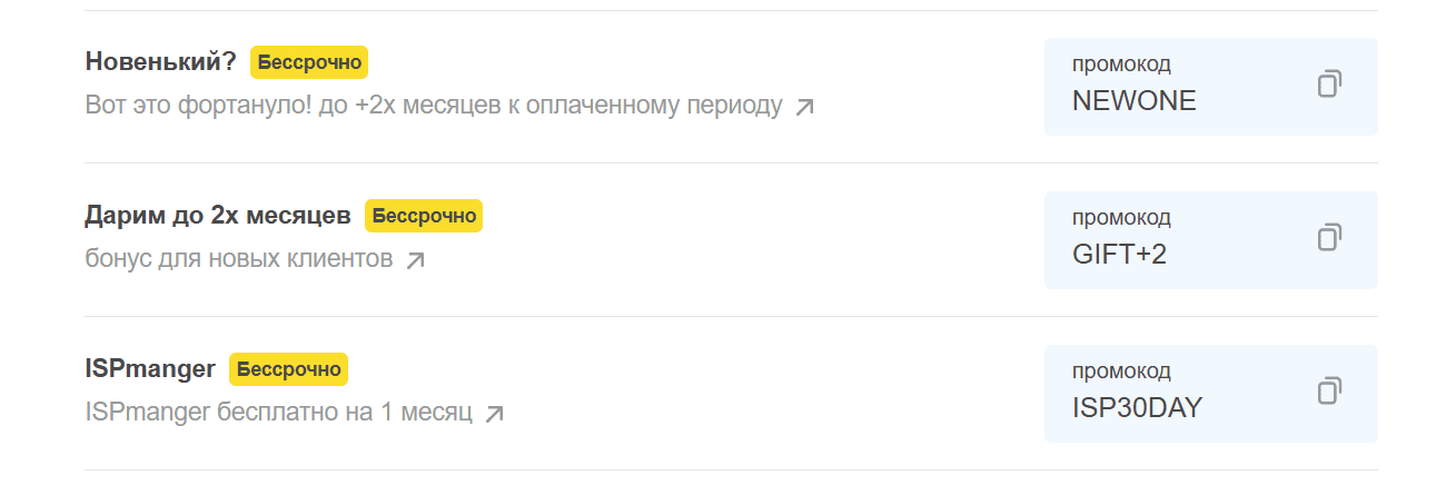 Обращаем ваше внимание, что на хостинге в данный момент действуют и другие промокоды и акции.