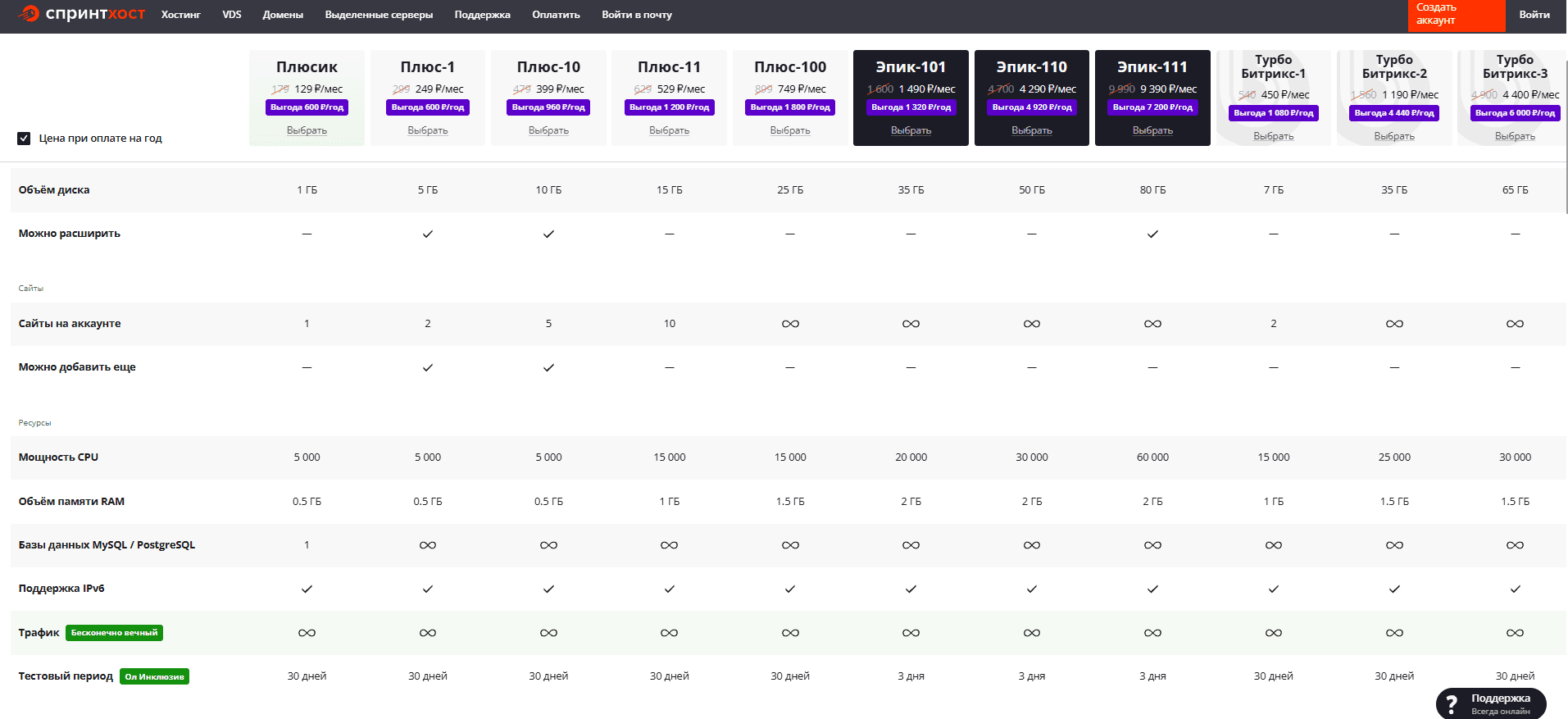 Спринтхост предоставляет своим клиентам возможность тестировать виртуальный хостинг в течение 30 дней для тарифных планов «Плюс» и «Турбо Битрикс» — это срок, который превышает предложения многих конкурентов. Это дает пользователям дополнительное время для тщательной проверки всех возможностей и стабильности сервиса перед принятием окончательного решения. Для премиум хостинга (тарифы Эпик) бесплатный тестовый период теперь составляет 3 дня.