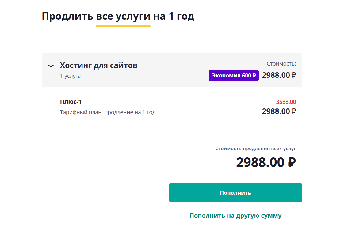 Если нет времени заходить в личный кабинет, пополнить счет можно напрямую на сайте. Для этого достаточно указать логин, любой домен, добавленный к аккаунту, или номер лицевого счета.